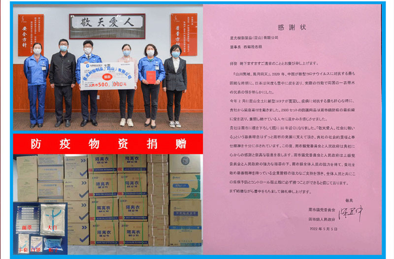 武汉新冠疫情爆发,公司防疫物资捐赠【12台热成像测温设备】 荣获昆山周市镇【高效复工复产企业】称号 荣获苏州市【无偿献血先进奖】称号 荣获昆山周市镇【抗疫爱心企业】称号