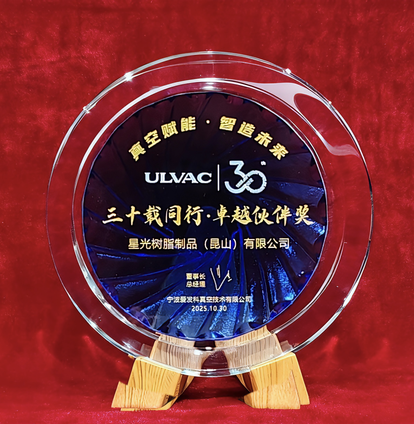 荣获宁波爱发科真空技术有限公司【三十载同行・卓越伙伴奖】表彰