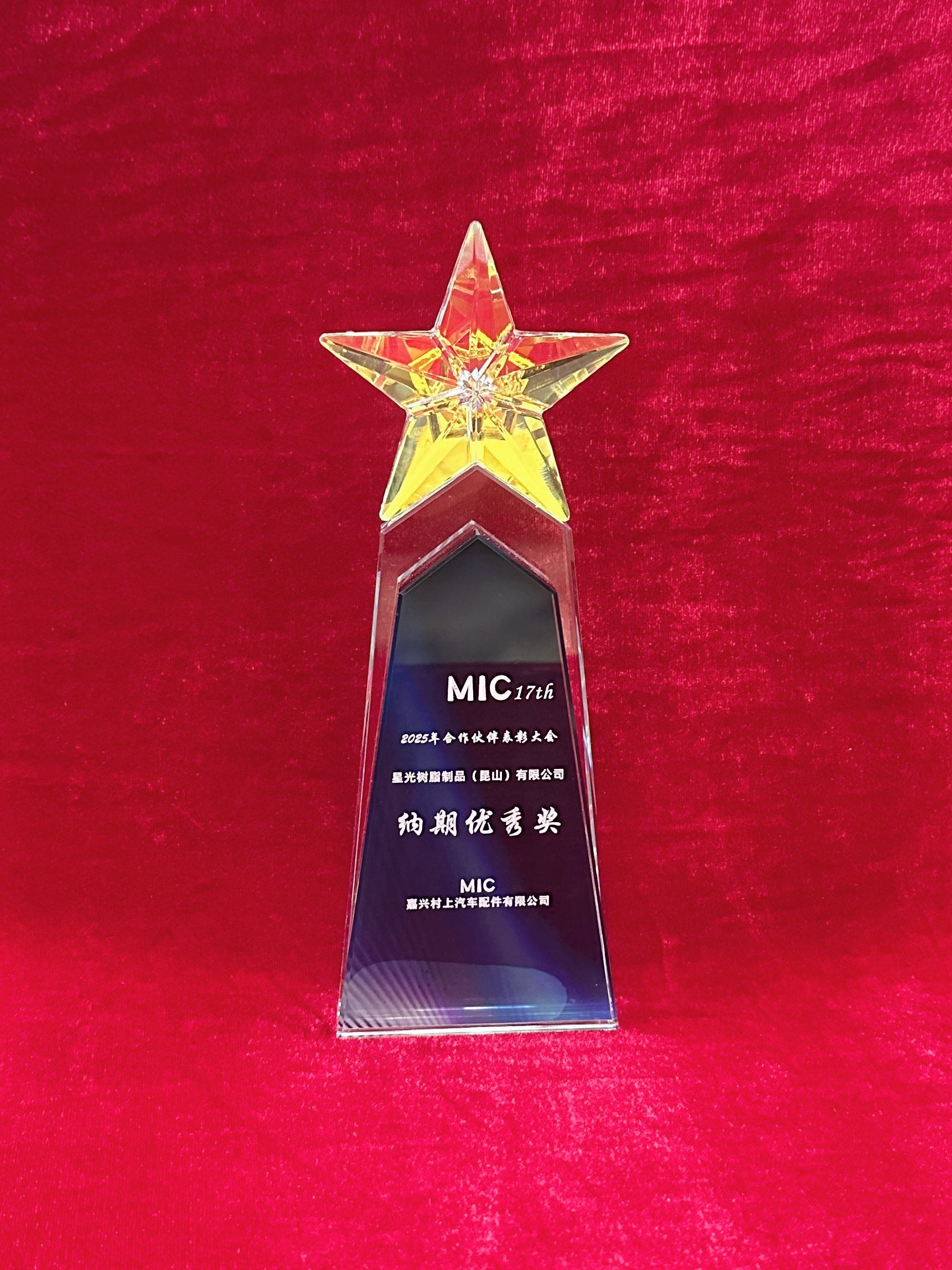 荣获嘉兴村上汽车配件有限公司【纳期优秀奖】表彰